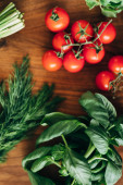 Martwa natura pomidor ogórek zielony cebula drewniane