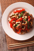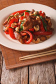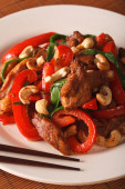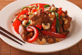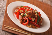 Tajski pikantny kurczak z papryką i zbliżenie nerkowca. poziome