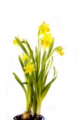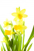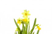 Żonkil żółty wiosna na białym tle odrobina krople.