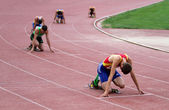 sportowe nastolatka w pozycji początkowej na torze .