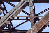 Wszystko stary zardzewiały metal most na tle niebieskiego nieba