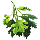 Liście świeżej pietruszki zioło na białym tle, akwarela, ilustracja na białym tle