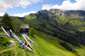 Sants, Szwajcaria - 27 maja: Konkurent Oleksandr Durko z Ukrainy zawodów szybowania szwajcarskich mistrzów bierze udział 27 maja 2012 w Sants, Szwajcaria
