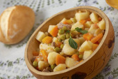 Tradycyjny posiłek peruwiański Matasquita z surowych warzyw i kosz chleba