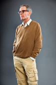 Zdjęcie "wyraziste, dobrze wyglądający starszy człowiek ścianę szary. zabawny i charakterystyczne. dobrze ubrany. niebieski sweter. łapka." może być wykorzystywane do celów osobistych i komercyjnych zgodnie z warunkami zakupionej licencji Royalty-free. Obraz jest dostępny do pobrania w jakości wysokiej rozdzielczości do 5760x3840.