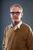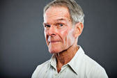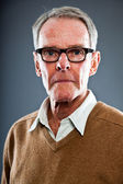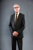 ekspresyjny dobry patrząc starszy człowiek w okularach ścianę szary. ręce modląc się. duchowe i charakterystyczne. dobrze ubrany. łapka.