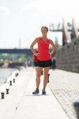 Zdjęcie "Dopasuj kobieta jogging nad rzeką." może być wykorzystywane do celów osobistych i komercyjnych zgodnie z warunkami zakupionej licencji Royalty-free. Obraz jest dostępny do pobrania w jakości wysokiej rozdzielczości do 5760x3840.
