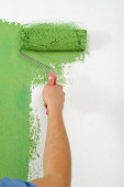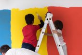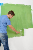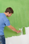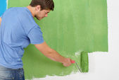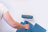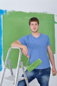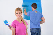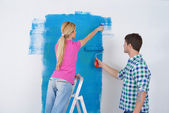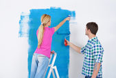 szczęśliwy para farby ściany w nowym domu