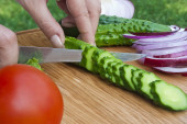 Zdjęcie "Szef kuchni kawałki ogórka" może być wykorzystywane do celów osobistych i komercyjnych zgodnie z warunkami zakupionej licencji Royalty-free. Obraz jest dostępny do pobrania w jakości wysokiej rozdzielczości do 5760x3840.