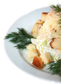 Sałatka caeser kurczaka na białym tle