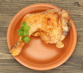 pieczony kurczak noga z pietruszki w płytkę na białe tło zbliżenie