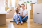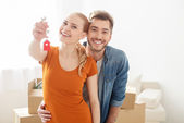 Młoda para zadowolony, Przeprowadzka do nowego domu