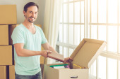 Zdjęcie "Szczęśliwy człowiek, przesłanie klucze wyświetlone w jego nowego mieszkania" może być wykorzystywane do celów osobistych i komercyjnych zgodnie z warunkami zakupionej licencji Royalty-free. Obraz jest dostępny do pobrania w jakości wysokiej rozdzielczości do 5760x3840.