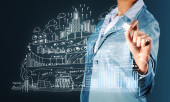 Kobieta przy użyciu nowoczesnych technologii dla biznesu