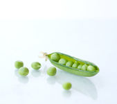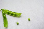 świeży zielony groszek w pod
