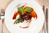 Zdjęcie "Stek cielęcy z sosem i szparagami" może być wykorzystywane do celów osobistych i komercyjnych zgodnie z warunkami zakupionej licencji Royalty-free. Obraz jest dostępny do pobrania w jakości wysokiej rozdzielczości do 5760x3840.