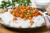 Fasolka po bretońsku na stole z teksturą