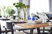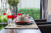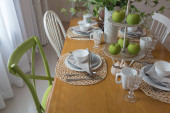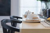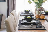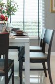 stół ustawiony na drewnianym stole w jadalni luksusowych