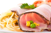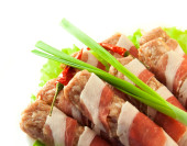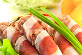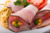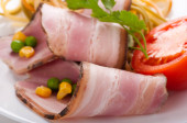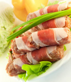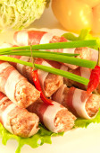 roll mięsa z boczkiem, cebulą i pieprzem, Zielona sałatka