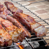 zbliżenie mięsa na grilla