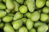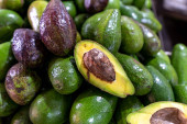 Grupa świeżych dojrzałych i niedojrzałych awokado na rynku farmer