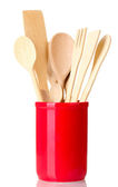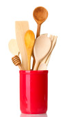 drewniane naczynia w kubek na białym tle