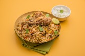 Zdjęcie "kurczaka autentyczne biryani z cebula raita" może być wykorzystywane do celów osobistych i komercyjnych zgodnie z warunkami zakupionej licencji Royalty-free. Obraz jest dostępny do pobrania w jakości wysokiej rozdzielczości do 5760x3840.