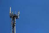 komunikat wieży z bliska z głęboko niebieski niebo jasne tło