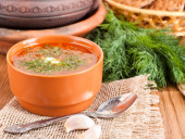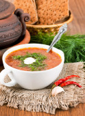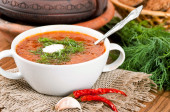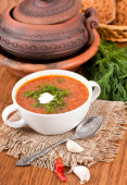 barszcz, zupa z buraków i kapusty z sosem pomidorowym. cebula z czosnkiem