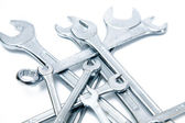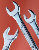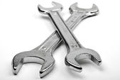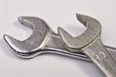 Dwa stary zardzewiały klucz nastawny przekroczył nad sobą