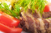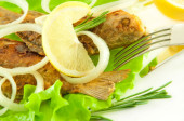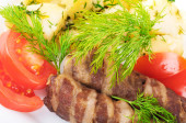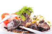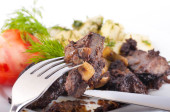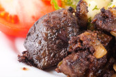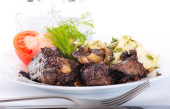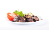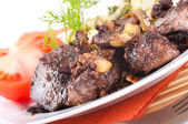 smażone wieprzowina wątroby z pomidorami i kopru włoskiego