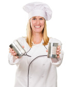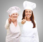 kobieta średniej wieku gotować na patelni w sosie z tyłu charakter