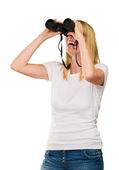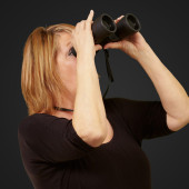 portret kobiety starszy patrząc przez lornetkę przed