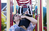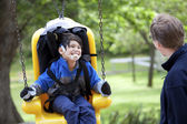 niepełnosprawny chłopiec kołysanie na specjalne potrzeby huśtawka