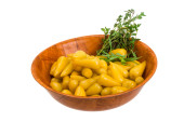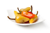 Mix hot turecki marynowane papryki w miski ceramiczne