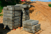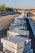 chodnik płytki na nowy chodnik. nowe roboty drogowe