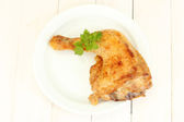 noga kurczaka pieczone z pietruszka w płytkę na białym tle