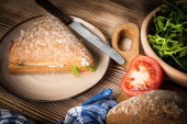 Zdjęcie "Kawałek chleb wiejski ze smalcem domowej roboty i ogórek." może być wykorzystywane do celów osobistych i komercyjnych zgodnie z warunkami zakupionej licencji Royalty-free. Obraz jest dostępny do pobrania w jakości wysokiej rozdzielczości do 5760x3840.