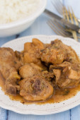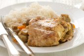 gulasz z królika z pieczarkami, marchewki i gotowanego ryżu