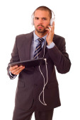 Zdjęcie "biznesmen z tabletem i słuchawkami, izolowane" może być wykorzystywane do celów osobistych i komercyjnych zgodnie z warunkami zakupionej licencji Royalty-free. Obraz jest dostępny do pobrania w jakości wysokiej rozdzielczości do 5760x3840.