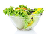 sałatką ze świeżych warzyw w przejrzysty miska na białym tle