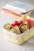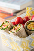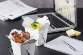 Gotować w domu bento box podczas lunchu pakietu office z komputera przenośnego