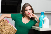 Kobieta sprzątająca swój dom