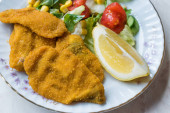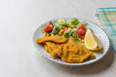 Zdjęcie "Sałatka ziemniaczana z schnitzel w restauracji." może być wykorzystywane do celów osobistych i komercyjnych zgodnie z warunkami zakupionej licencji Royalty-free. Obraz jest dostępny do pobrania w jakości wysokiej rozdzielczości do 5760x3840.