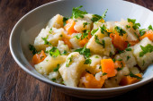 Zdjęcie "Sałatka ziemniaczana z schnitzel w restauracji." może być wykorzystywane do celów osobistych i komercyjnych zgodnie z warunkami zakupionej licencji Royalty-free. Obraz jest dostępny do pobrania w jakości wysokiej rozdzielczości do 5760x3840.