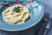 Zdjęcie "Sałatka ziemniaczana z schnitzel w restauracji." może być wykorzystywane do celów osobistych i komercyjnych zgodnie z warunkami zakupionej licencji Royalty-free. Obraz jest dostępny do pobrania w jakości wysokiej rozdzielczości do 5760x3840.