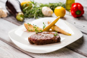 Zdjęcie "Stek na lekki brązowy deska." może być wykorzystywane do celów osobistych i komercyjnych zgodnie z warunkami zakupionej licencji Royalty-free. Obraz jest dostępny do pobrania w jakości wysokiej rozdzielczości do 5760x3840.
