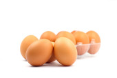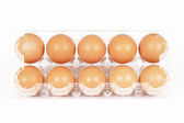 Jaj rolki w skrzynce z tworzywa sztucznego na białym tle