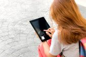 Zdjęcie "młoda kobieta korzystająca z tabletu" może być wykorzystywane do celów osobistych i komercyjnych zgodnie z warunkami zakupionej licencji Royalty-free. Obraz jest dostępny do pobrania w jakości wysokiej rozdzielczości do 5760x3840.
