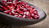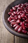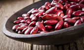 zbliżenie czerwona fasola nerkowa w łyżce drzewnej